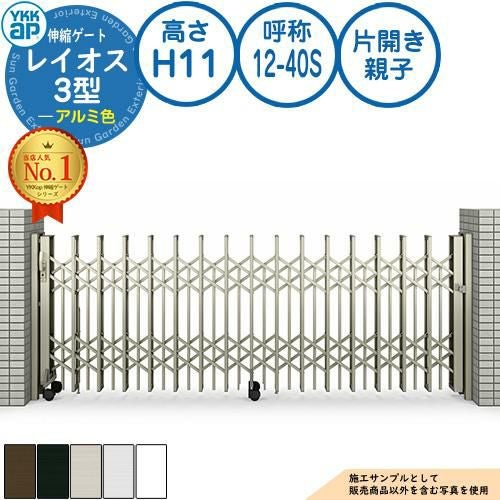 伸縮門扉 カーテンゲート 伸縮ゲート レイオス 3型 ペットガードタイプ 片開き親子 アルミ色 H11 呼称:12-40S