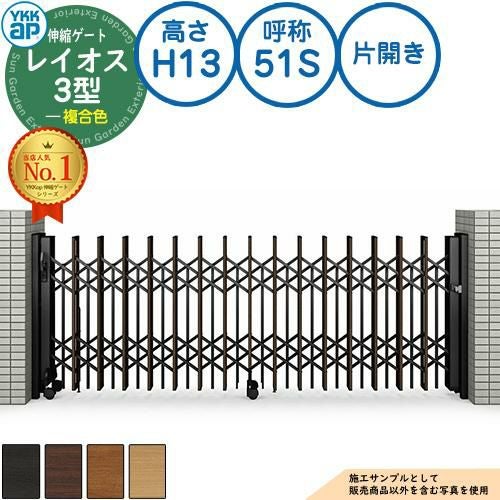 伸縮門扉 カーテンゲート 伸縮ゲート レイオス 3型 ペットガードタイプ 片開き 複合色 H13 呼称:51S