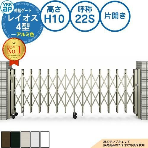 伸縮門扉 カーテンゲート 伸縮ゲート レイオス 4型 ダブルパンタタイプ 片開き アルミ色 H10 呼称:22S
