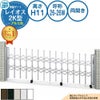 伸縮門扉 カーテンゲート 伸縮ゲート レイオス 2K型 傾斜地用タイプ 両開き アルミ色 H11 呼称:26-26W