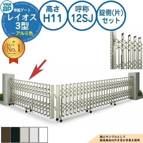 伸縮門扉 カーテンゲート 伸縮ゲート レイオス 3型 ペットガードタイプ 錠側(片)セット アルミ色 H11 呼称:12SJ
