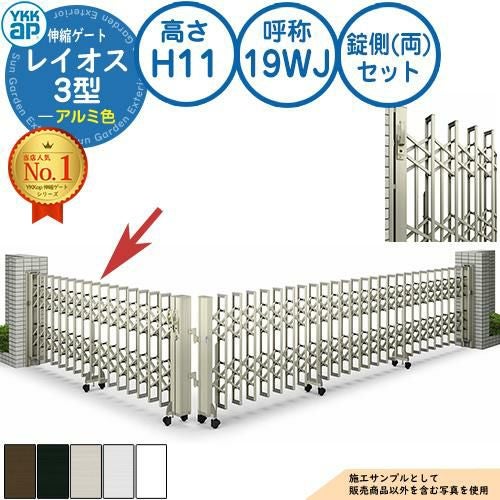 伸縮門扉 カーテンゲート 伸縮ゲート レイオス 3型 ペットガードタイプ 錠側(両)セット アルミ色 H11 呼称:19WJ
