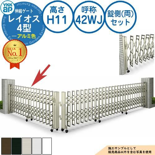 伸縮門扉 カーテンゲート 伸縮ゲート レイオス 4型 大間口対応タイプ 錠側(両)セット アルミ色 H11 呼称:42WJ