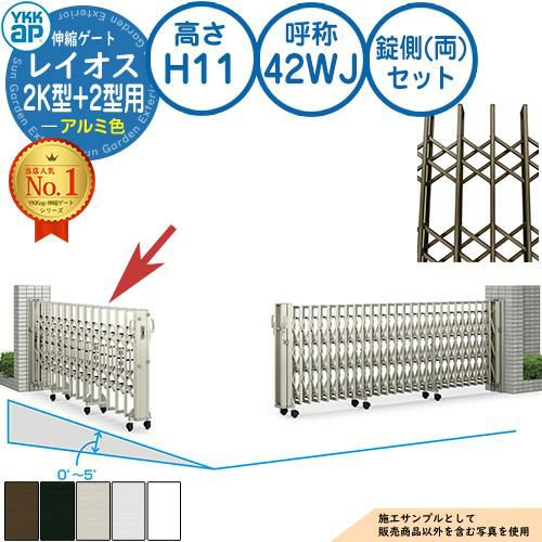 伸縮門扉 カーテンゲート 伸縮ゲート レイオス 2K型+2型用 錠側(両)セットのみ(傾斜地用) アルミ色 H11 呼称:42WJ
