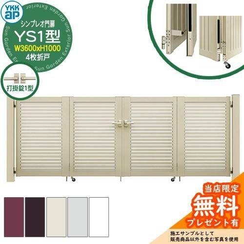 シンプレオ門扉 YS1型 4枚折戸・門柱セット 呼称:09-10(W3600×H1000)