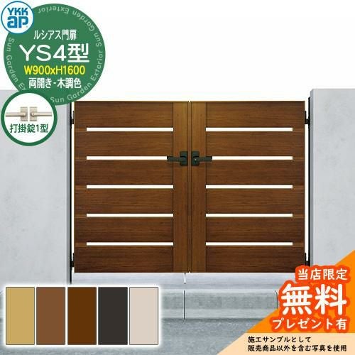 ルシアス門扉 YS4型 両開き・門柱セット 木調色 呼称:09-16(W900×H1600)