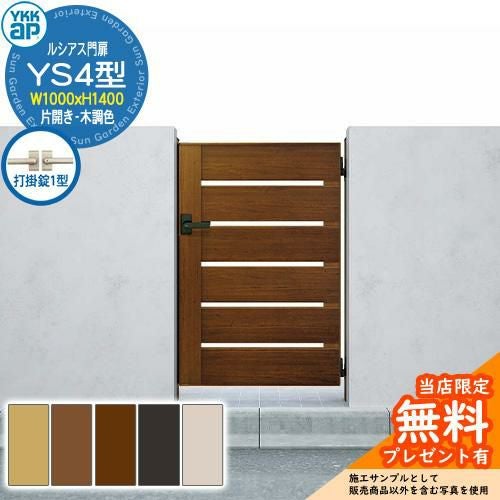 ルシアス門扉 YS4型 片開き・門柱セット 木調色 呼称:10-16(W1000×H1600)