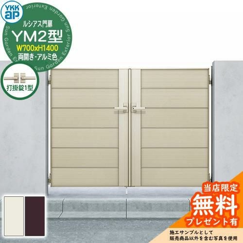 ルシアス門扉 YM2型 両開き・門柱セット アルミ色 呼称:07-14(W700×H1400)