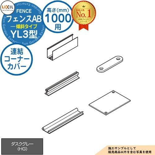 フェンス LIXIL フェンスAB YL3(傾斜)型 ダスクグレー H1000タイプ(T-10サイズ) 連結コーナーカバー