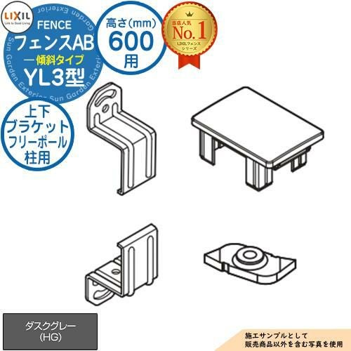 フェンス LIXIL フェンスAB YL3(傾斜)型 ダスクグレー H600タイプ(T-6サイズ) 上下ブラケットセット フリーポール柱用