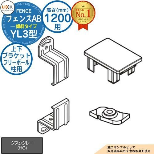 フェンス LIXIL フェンスAB YL3(傾斜)型 ダスクグレー H1200タイプ(T-12サイズ) 上下ブラケットセット フリーポール柱用