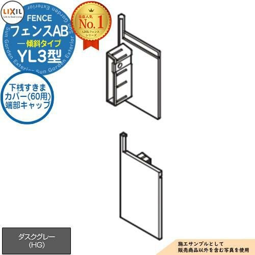 フェンス LIXIL フェンスAB YL3(傾斜)型 ダスクグレー 下桟すきまカバー(60用) 端部キャップ