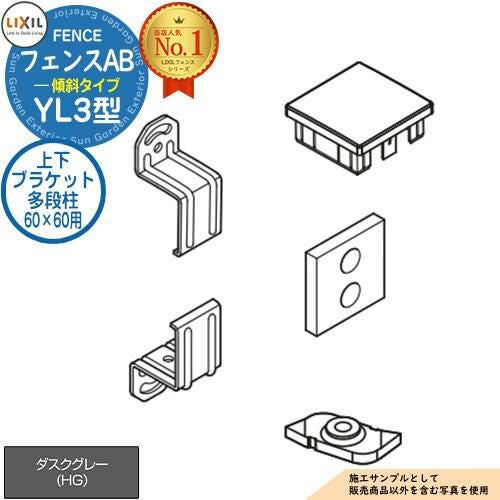 フェンス LIXIL フェンスAB YL3(傾斜)型 ダスクグレー 2段柱用 上下ブラケットセット 多段柱60×60用