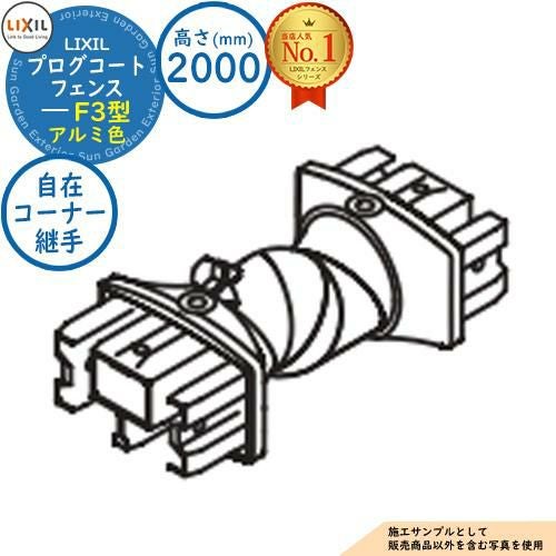 プログコートフェンス F3型 アルミ色 H2000タイプ(T-20サイズ) 自在コーナー継手(2コ入)