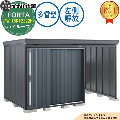 フォルタ ウィズ 開放スペース併設物置 FW-15K+2222H 左側解放スペース ハイルーフ 多雪型 幅3740×奥行2210×高さ2385