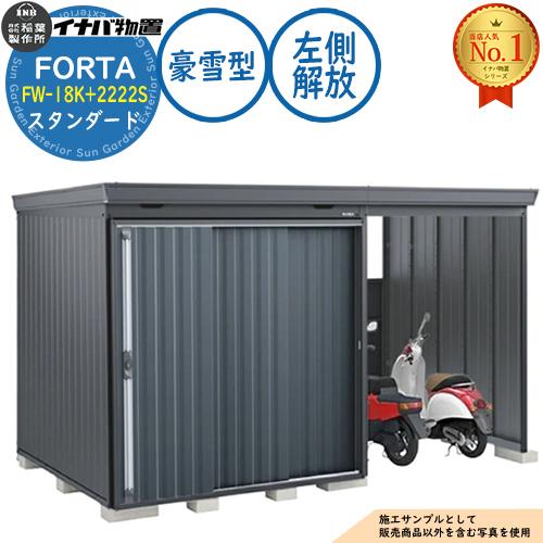 物置 屋外 収納 フォルタ ウィズ 開放スペース併設物置 FW-18K+2222S 左側解放スペース スタンダード 豪雪型 幅4000×奥行2210×高さ2085