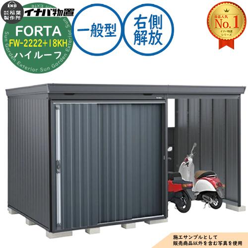 フォルタ ウィズ 開放スペース併設物置 FW-2222+18KH 右側解放スペース ハイルーフ 一般型 幅4000×奥行2210×高さ2385