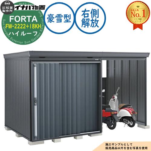 フォルタ ウィズ 開放スペース併設物置 FW-2222+18KH 右側解放スペース ハイルーフ 豪雪型 幅4000×奥行2210×高さ2385