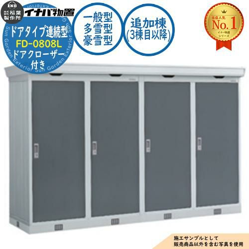連続型物置 フォルタ ドアタイプ連続型 FD-0808L 追加棟(3棟目以降) ドアクローザー付き 一般型・多雪型・豪雪型 幅820×奥行820×高さ2085