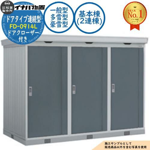 連続型物置 フォルタ ドアタイプ連続型 FD-0914L 基本棟(2連棟) ドアクローザー付き 一般型・多雪型・豪雪型 幅1900×奥行1370×高さ2085