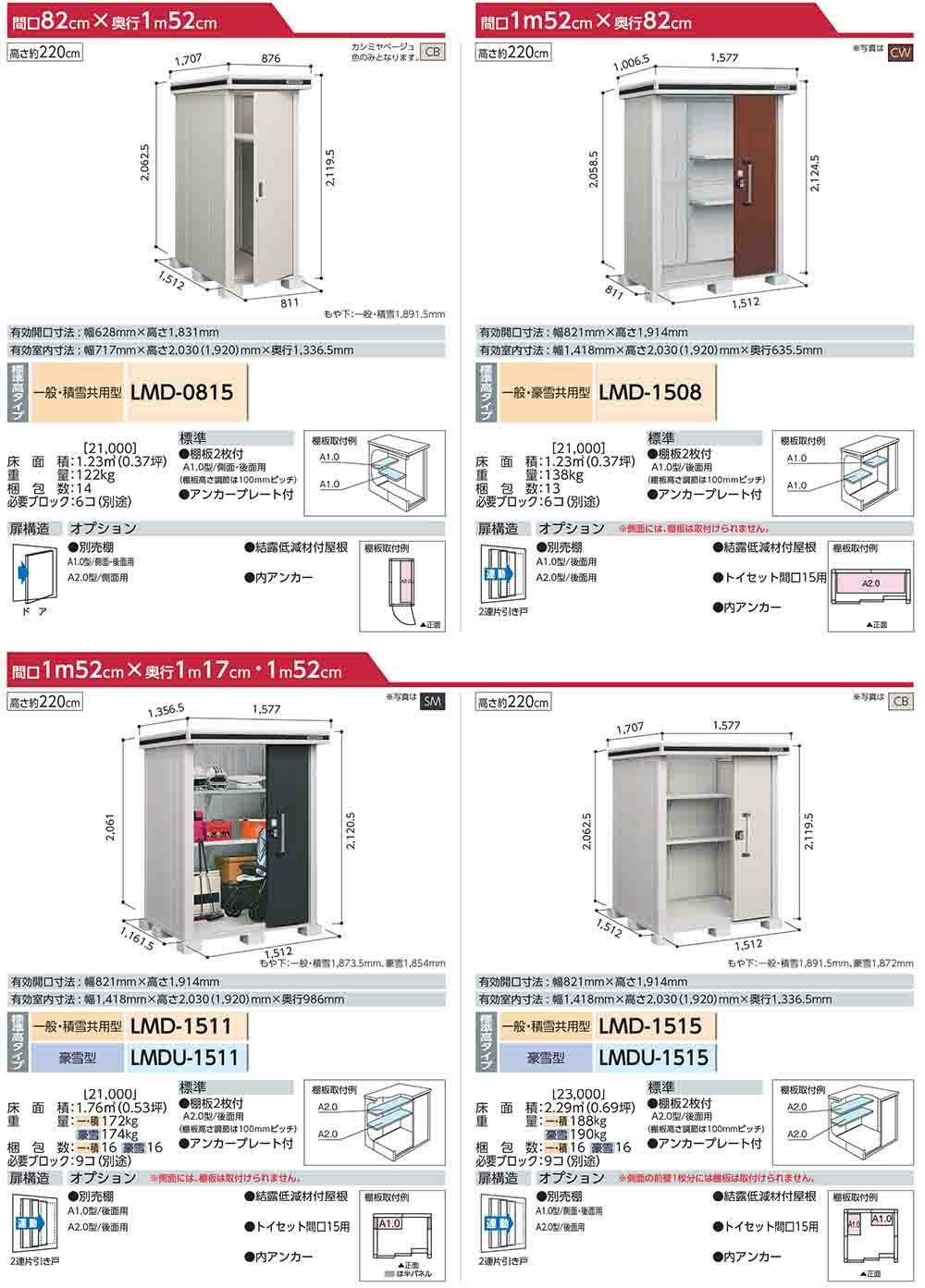 セット内容 ■エルモ 中・大型物置 LMD-1518 2連片引き戸 標準高タイプ 一般・積雪共用型 間口1512×奥行1863×高さ2119