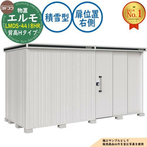 セット内容 ■エルモ 中・大型物置 LMDS-4418HR 連結タイプ 2連片引き戸 背高Hタイプ 扉位置:右側 積雪型 間口4428×奥行1863×高さ2359