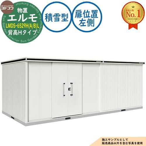 セット内容 ■エルモ 中・大型物置 LMDS-6529H□L 連結タイプ センター引き分け戸 背高Hタイプ 扉位置:左側 積雪型 間口6531×奥行2914×高さ2356