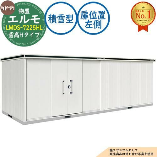 物置 屋外 収納 エルモ 中・大型物置 LMDS-7225HL 連結タイプ センター引き分け戸 背高Hタイプ 扉位置:左側 積雪型 間口7232×奥行2564×高さ2356
