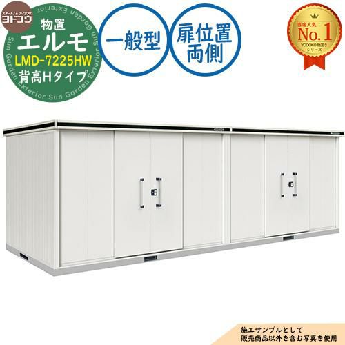 セット内容 ■エルモ 中・大型物置 LMD-7225HW 連結タイプ センター引き分け戸 背高Hタイプ 扉位置:両側 一般型 間口7232×奥行2564×高さ2356