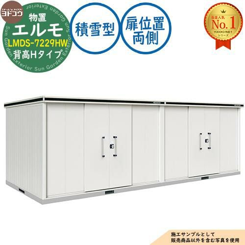セット内容 ■エルモ 中・大型物置 LMDS-7229HW 連結タイプ センター引き分け戸 背高Hタイプ 扉位置:両側 積雪型 間口7232×奥行2914×高さ2356