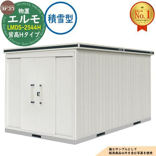 セット内容 ■エルモ 中・大型物置 LMDS-2544H 縦長(側面扉)タイプ センター引き分け戸 背高Hタイプ 積雪型 間口2564×奥行4428×高さ2356