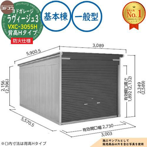 車庫 シャッター ガレージ ヨドガレージ ラヴィージュ3 防火仕様 VXC-3055H シャッタータイプ 背高Hタイプ 基本棟 一般型 間口3003×奥行5570×高さ2589