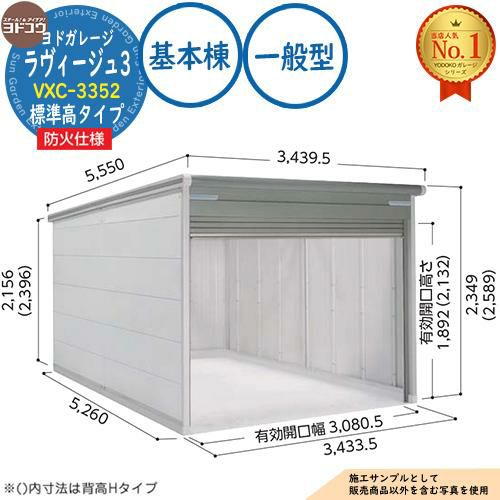 ヨドガレージ ラヴィージュ3 防火仕様 VXC-3352 シャッタータイプ 標準高タイプ 基本棟 一般型 間口3353×奥行5220×高さ2349