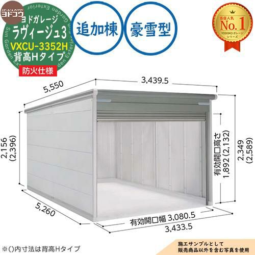 セット内容 ■ヨドガレージ ラヴィージュ3 防火仕様 VXCU-3352H シャッタータイプ 背高Hタイプ 追加棟 豪雪型 間口3433.5×奥行5260×高さ2589
