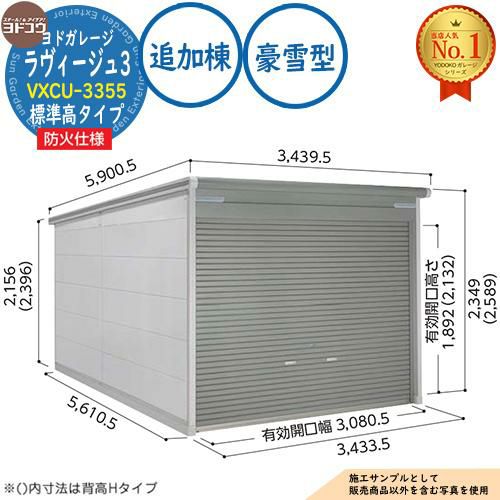 ヨドガレージ ラヴィージュ3 防火仕様 VXCU-3355 シャッタータイプ 標準高タイプ 追加棟 豪雪型 間口3353×奥行5570×高さ2349