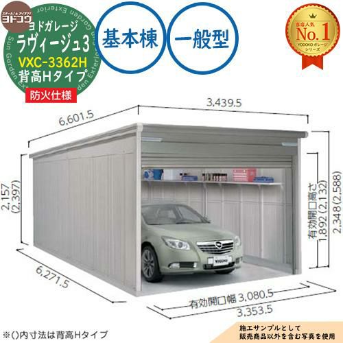 車庫 シャッター ガレージ ヨドガレージ ラヴィージュ3 防火仕様 VXC-3362H シャッタータイプ 背高Hタイプ 基本棟 一般型 間口3353×奥行6271×高さ2589