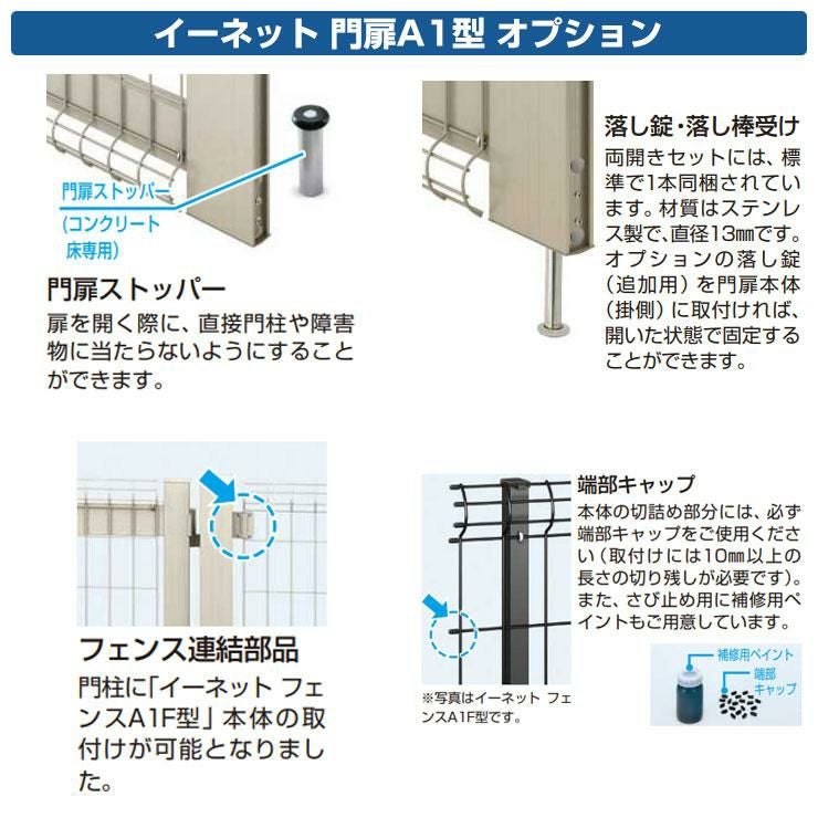 イーネット 門扉A1型 解錠防止配慮タイプ 片開き 門柱仕様 門柱セット 呼称:10-18 W1000×H1720(扉1枚寸法)
