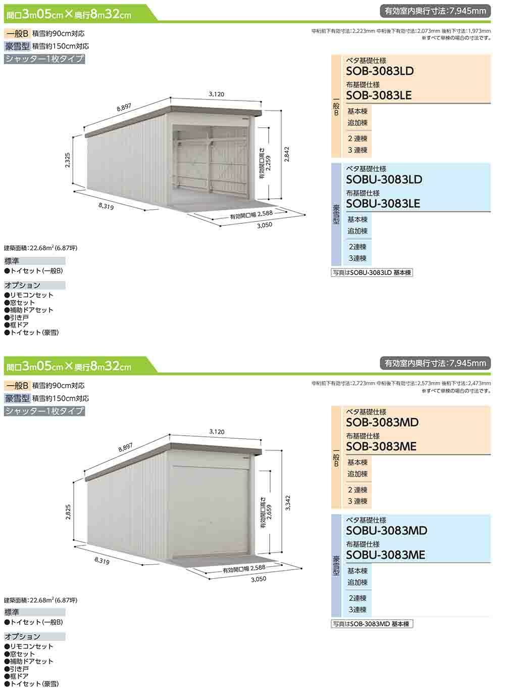 ヨド倉庫 SOBU-3083MD ベタ基礎仕様 追加棟 豪雪型 間口3050×奥行8319×高さ3342