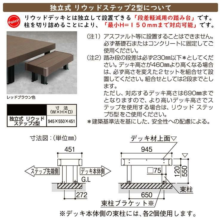 YKKap リウッドステップ5型 Sタイプ(2段) ANK リウッドデッキ200 Sタイプ・Tタイプ用部材(H230~H550用)