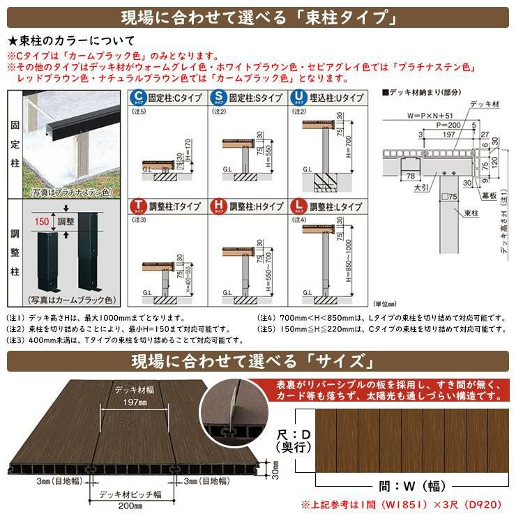 YKKap リウッドデッキ 200 EG 基本セット 固定柱 Cタイプ(高さ:H170mm)×6尺(奥行:D1820mm)×1.5間(間口:W2651mm)
