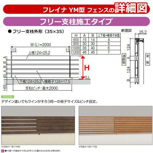 形材フェンス フレイナYM型 H600タイプ専用 呼称:2006 オプションポールのみ フリー支柱(木調色)