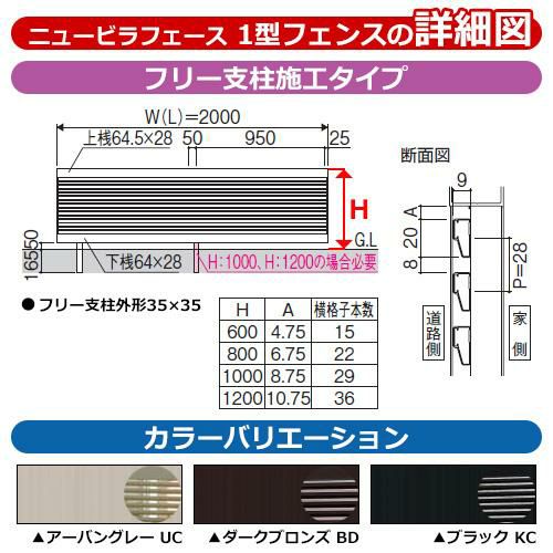 形材フェンス ニュービラフェース1型 H1000タイプ専用 呼称:2010 オプションポールのみ フリー支柱