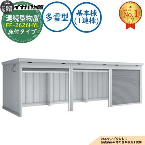 連続型物置 ドマール シャッタータイプ連続型 FF-2630HYL 床付タイプ 基本棟(1連棟) 多雪型・豪雪型 幅2630×奥行3050×高さ2385