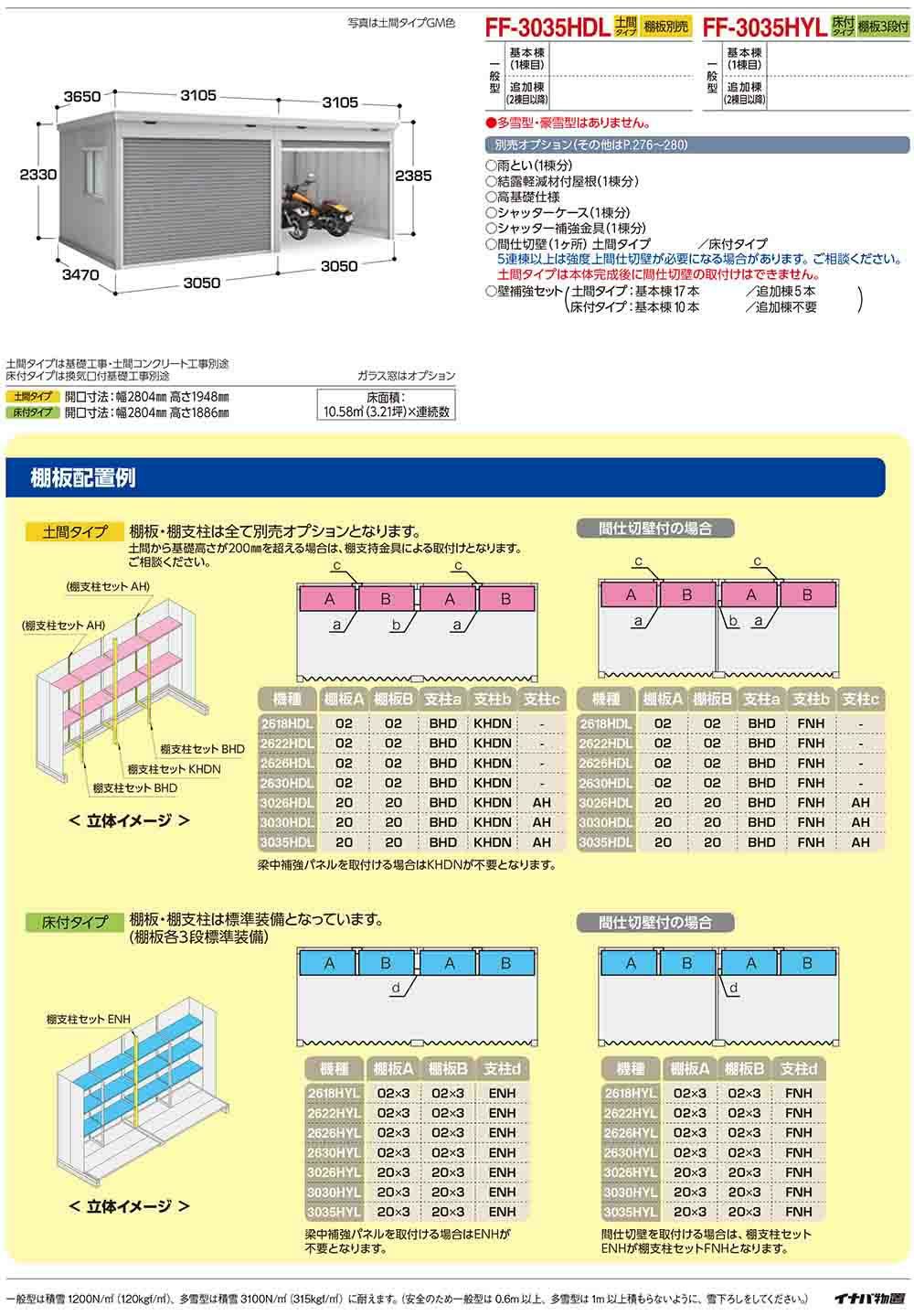 連続型物置 ドマール シャッタータイプ連続型 FF-3026HYL 床付タイプ 追加棟(2棟目以降) 多雪型・豪雪型 幅3050×奥行2630×高さ2385