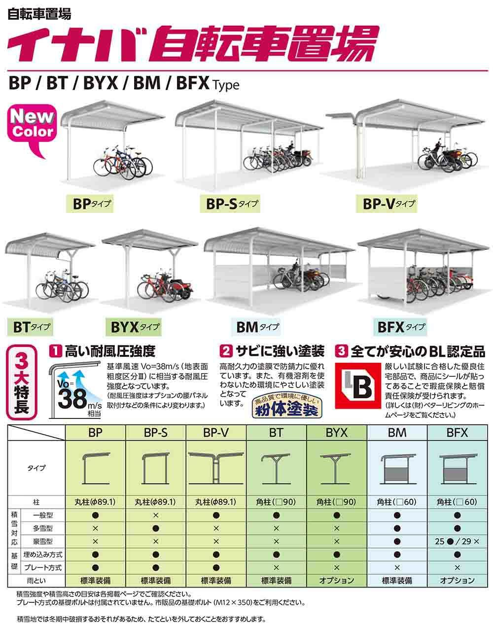 イナバ自転車置場 BYX-29L 追加棟(2棟目以降) BYXタイプ 一般型 幅2940×奥行2000×高さ2260