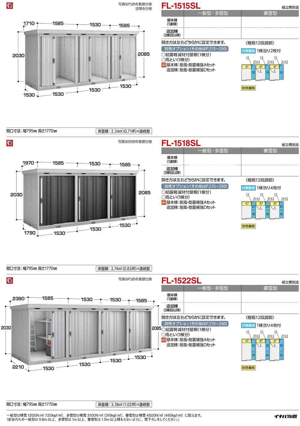 連続型物置 フォルタ 引き戸タイプ連続型 FL-2215SL 追加棟(2棟目以降) 多雪型 幅2210×奥行1530×高さ2085