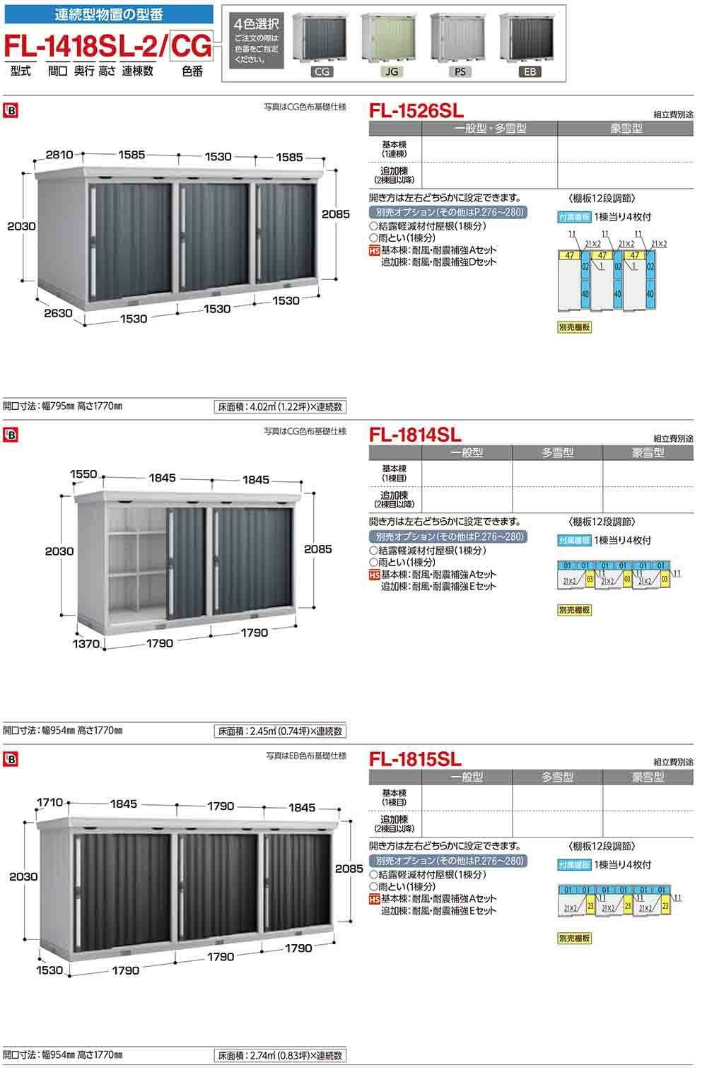 連続型物置 フォルタ 引き戸タイプ連続型 FL-1415SL 基本棟(1連棟) 豪雪型 幅1370×奥行1530×高さ2085