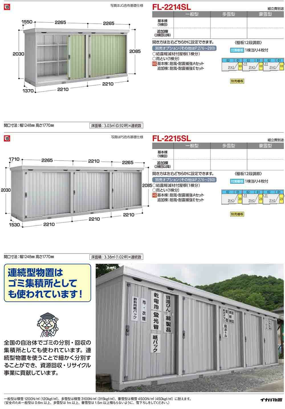 連続型物置 フォルタ 引き戸タイプ連続型 FL-2214SL 基本棟(1連棟) 豪雪型 幅2210×奥行1370×高さ2085