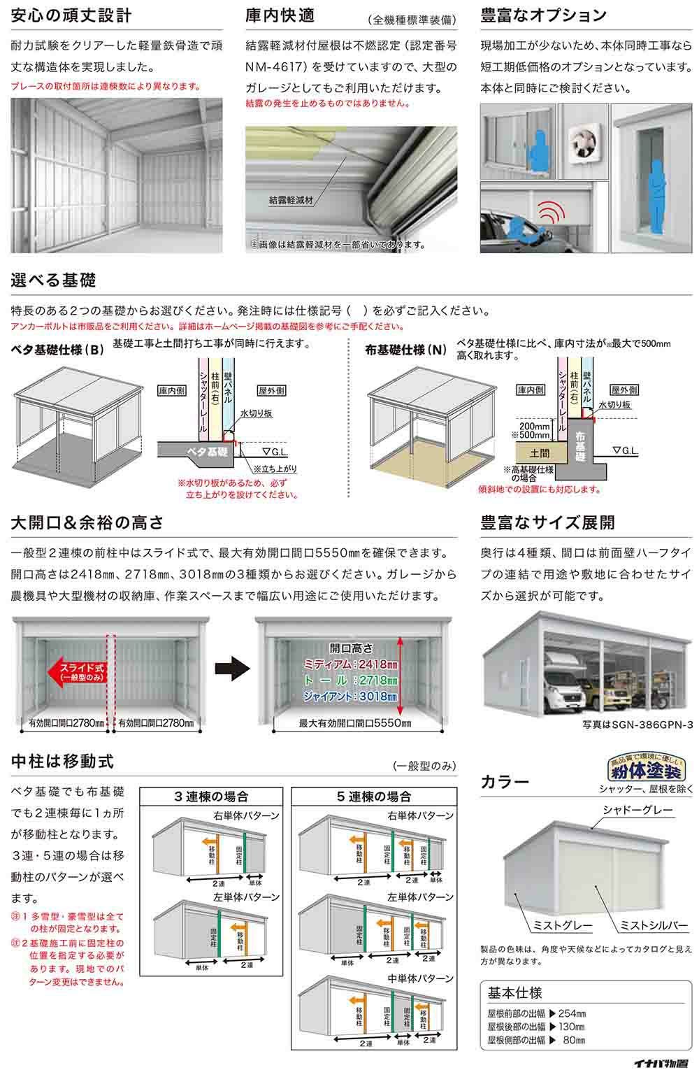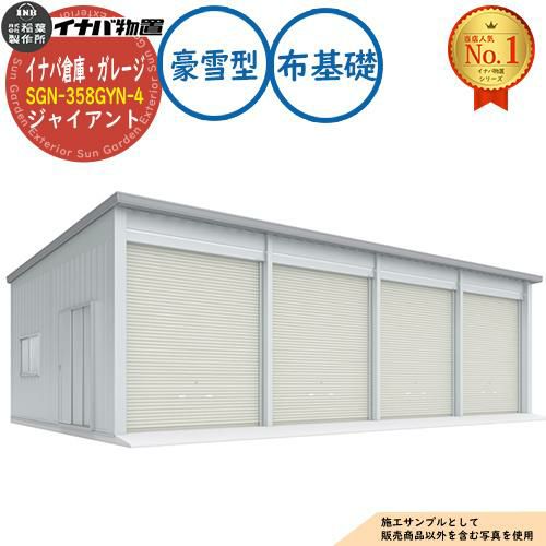 イナバ倉庫・ガレージ SGN-358GYB-4 ベタ基礎 ジャイアント 4棟タイプ 豪雪型 幅12286×奥行5886×高さ3665