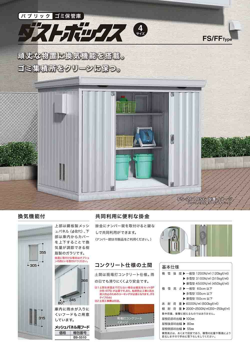 ダストボックス ゴミ保管庫 FS-2618SG スタンダード 多雪型・豪雪型 幅2630×奥行1790×高さ2085